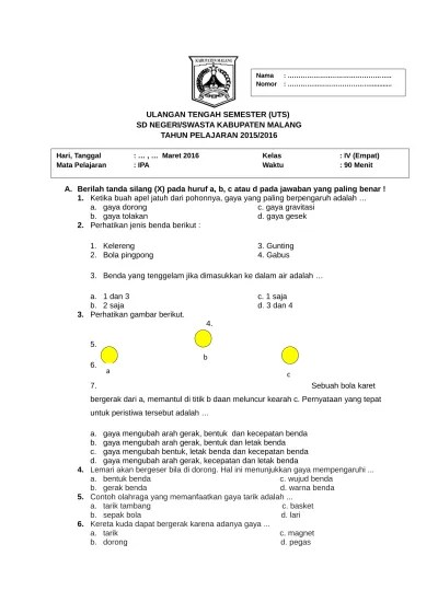 Pemerintah kabupaten bondowoso unit pelaksana teknis dinas pendidikan sd darut thalabah ulangan tengah semester i tahun pelajaran jl. Ulangan mid semester gasal tp. Soal uaspas kelas 1 semester 2 genap tema 7 unduh. Dalam pembahasan kunci jawaban soal uts pts pai kelas 2 sd mi semester 1 kurikulum 2013 akan dibahas 35 soal pilihan ganda dan esai 10 soal. Tepatnya di awal bulan desember akan dilaksanakan ulangan akhir semester (uas).